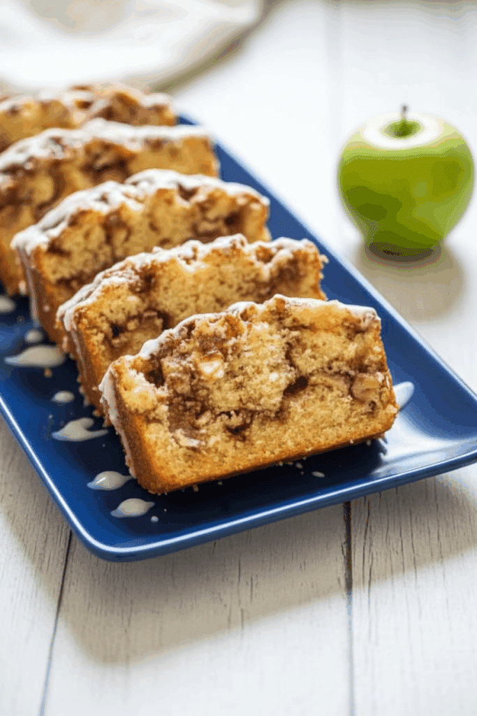 From the first slice, you get layers of buttery batter, sweet cinnamon sugar, and pockets of juicy apples. A simple vanilla glaze on top melts slightly into the loaf, adding just the right amount of sweetness without overpowering the apples. It’s the kind of bread that disappears quickly—whether it’s sitting on the counter for breakfast or served warm as an afternoon treat.