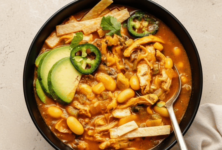Warm, hearty, and unbelievably creamy, this White Bean Chicken Enchilada Soup is everything you want on a cozy day. It’s loaded with tender chicken, white beans, flavorful enchilada sauce, and vibrant spices — yet there’s no dairy or cream in sight. The magic? Blended beans that give the soup its silky texture and extra protein boost. Why You’ll Love This ...