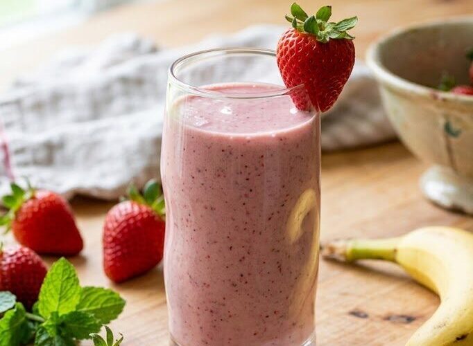 If you’re looking for a breakfast that’s fast, delicious, and nourishing, this Strawberry Banana Smoothie is your new go-to. With just four main ingredients, it comes together in minutes, is naturally sweet, and leaves you satisfied until lunch. Glasses of Strawberry Banana Smoothie garnished with strawberry slices. Strawberries and bananas arranged on the counter. Save this recipe for your next ...
