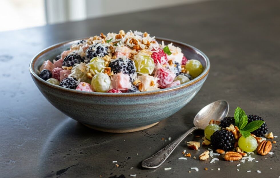 This creamy fruit salad isn’t just about taste—it’s packed with health benefits too. The variety of fruits provides a rich source of vitamins, fiber, and antioxidants, making it both a nutritious and indulgent option. Its creamy dressing adds a luxurious texture without overpowering the natural sweetness of the fruit.
