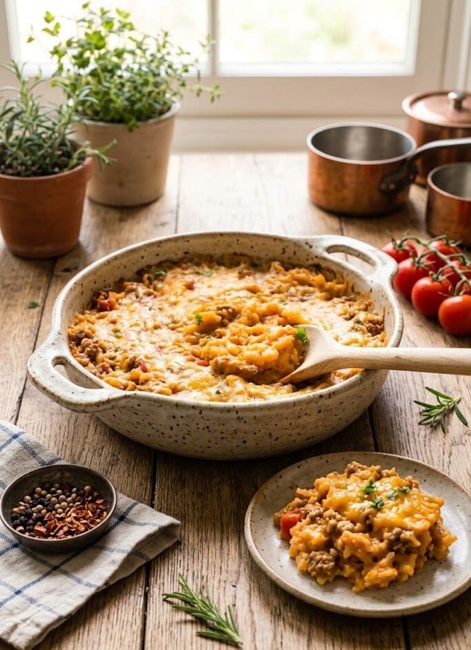 The combination of creamy cheddar soup, seasoned beef, and soft hash browns makes this dish incredibly comforting. The slow cooking process allows the ingredients to meld together perfectly, ensuring every bite is packed with flavor. Unlike baked casseroles, the slow cooker keeps the potatoes tender while keeping the cheese gooey.