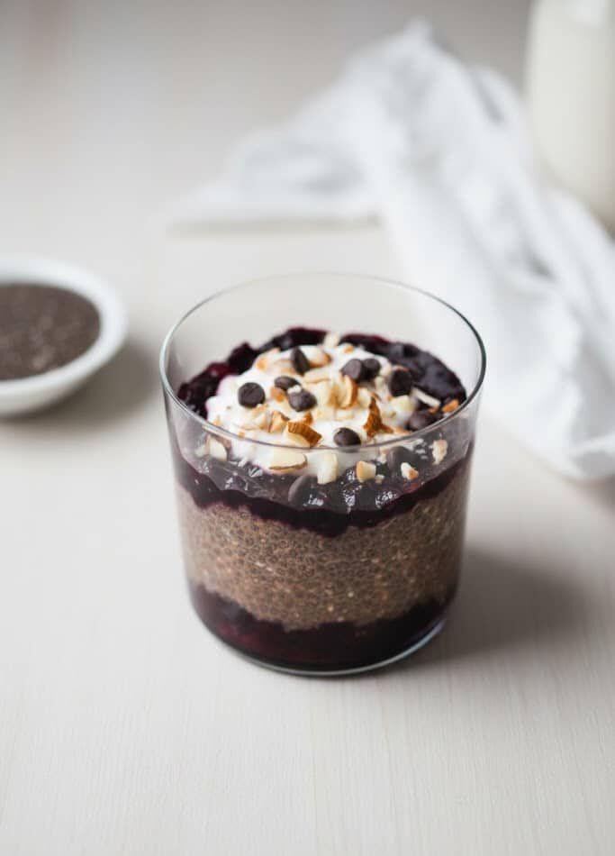• Healthy and Indulgent: The chocolate layer makes it feel like a treat, while the chia seeds and blueberries provide fiber, antioxidants, and omega-3s.