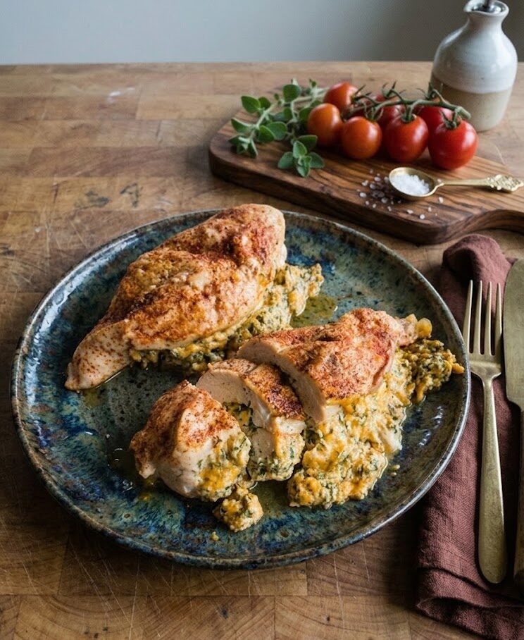 Arrange the stuffed chicken on the prepared baking sheet. Bake for 30–35 minutes or until the internal temperature reaches 165°F (74°C). Let the chicken rest for 5 minutes before serving to allow the juices and cheese to settle.