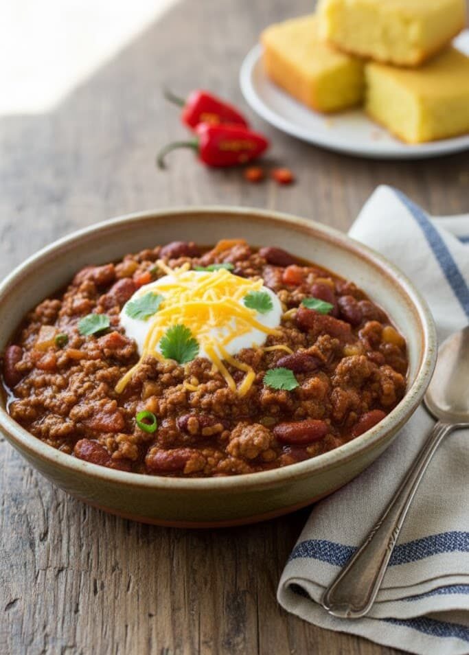Chili pairs perfectly with cornbread, baked potatoes, or even over rice. It’s also a favorite for game days and casual gatherings.