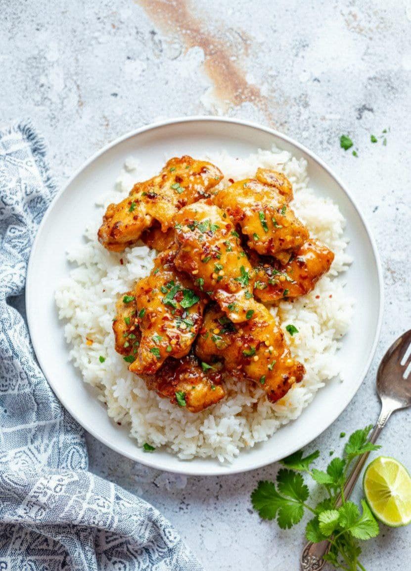 The simplest way to serve this honey garlic chicken is over steamed or boiled rice. The sauce soaks into the rice, making each bite full of flavor.